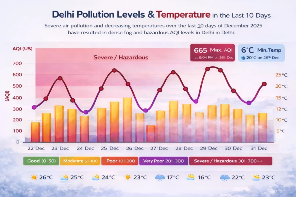 Every winter, Delhi faces a familiar crisis. Falling temperatures, calm winds, and temperature inversion trap pollutants close to the ground, forming a thick layer of smog. In recent days, this phenomenon has intensified. Air Quality Index (AQI) levels have repeatedly crossed into the “severe” and “hazardous” categories, with readings exceeding 600 on some days — far above what is considered safe for human exposure.